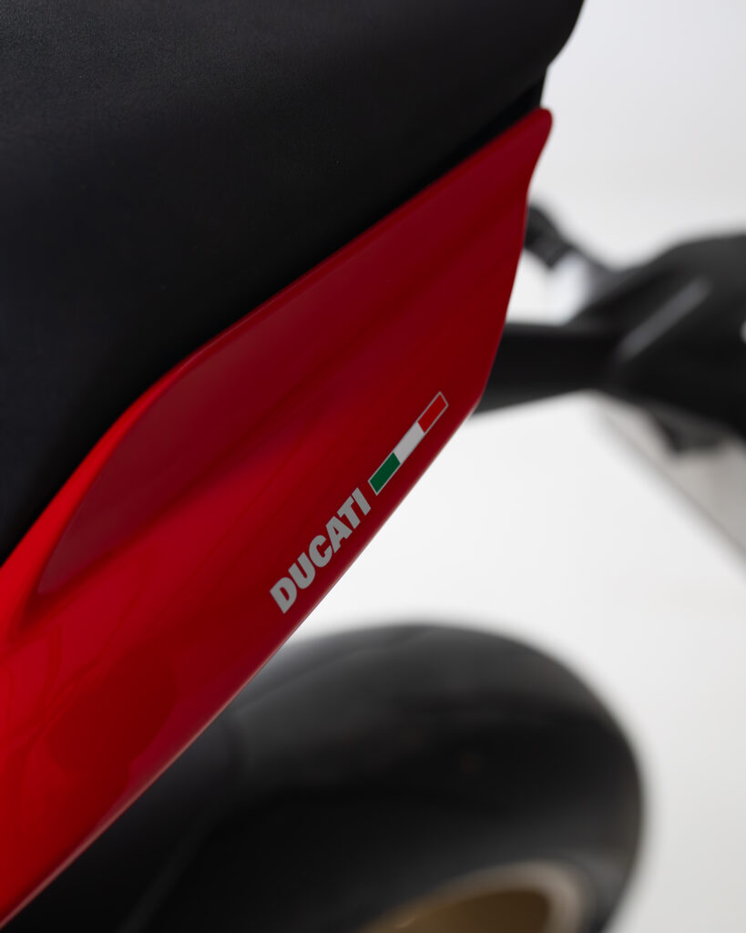 • Aggressive Panigale bodywork with single-sided swingarm