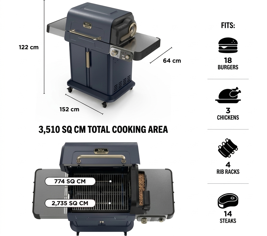 • Huge 3,510 sq cm total cooking area.