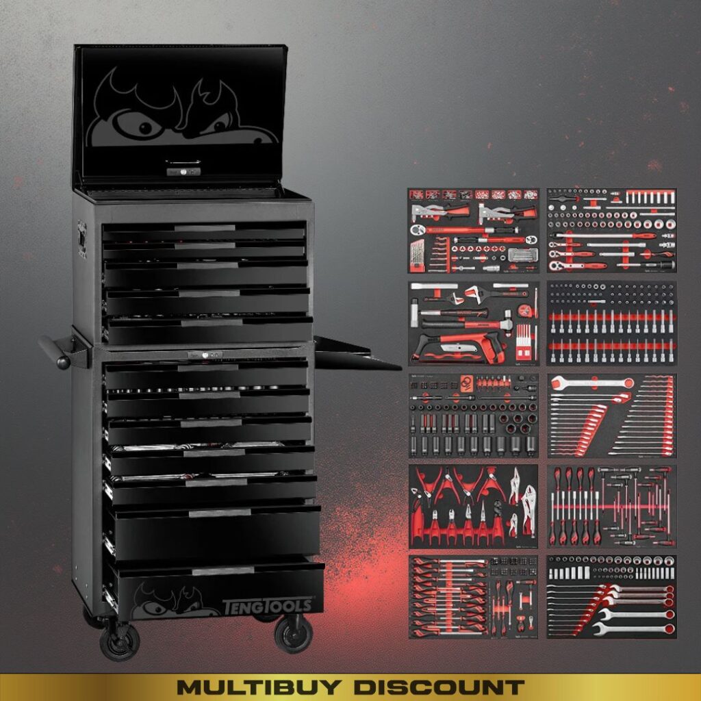• Wide range of essential tools including sockets, ratchets, spanners, screwdrivers, pliers, torque wrenches, drills & general workshop tools